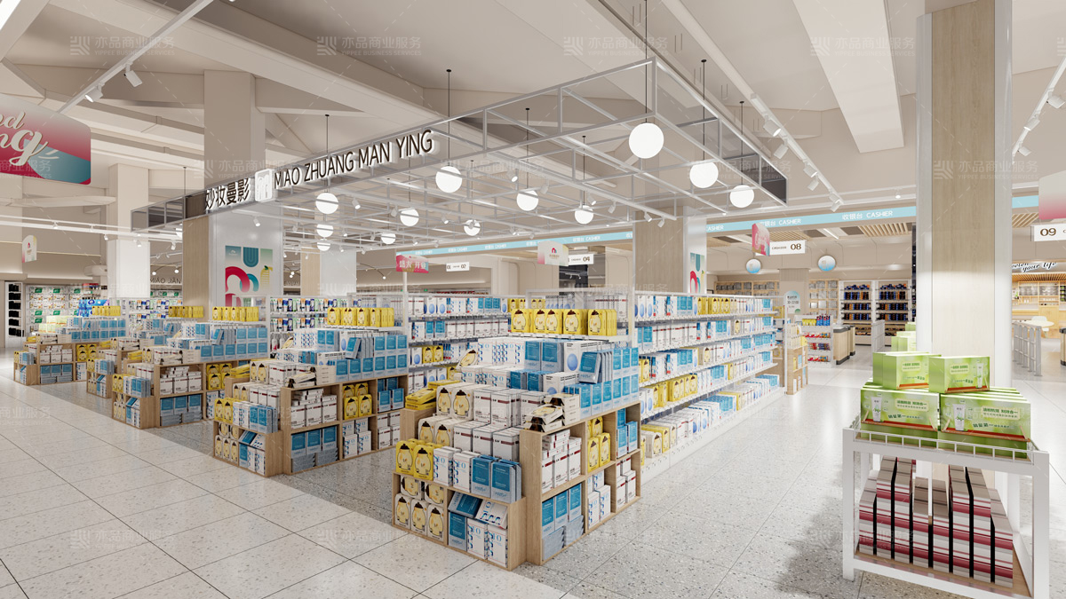 亦品聚焦妙多客品牌升级的重点诉求,突破以往传统超市概念,植入东方生活美学,将东方审美融入未来设计潮向,完成全面精致化的改造。